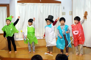 2月19日の子どもが観客の「こどもげき遊びの会」、2月20日の保護者が観客の「劇遊びの会」、両日ともに元気いっぱい、いつもよりもさらに上手に発表していました。